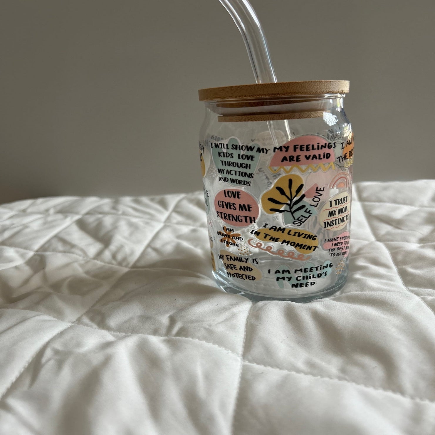This beer glass cup is made for hot/ cold drinks. Bamboo lid and bent glass straw included.